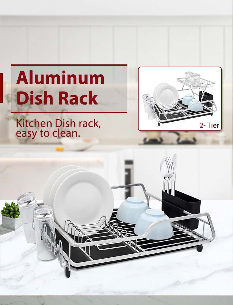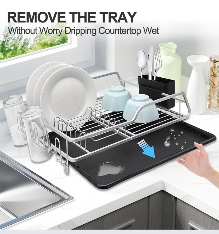In rental properties, kitchen supplies prioritize durability and ease of maintenance. The aluminum Dish Drying Rack with Tray resists significant aging from long-term use, and its surface coating is easy to clean, reducing the need for frequent replacement. This is suitable for property managers or bulk purchasing clients for standardized configurations.