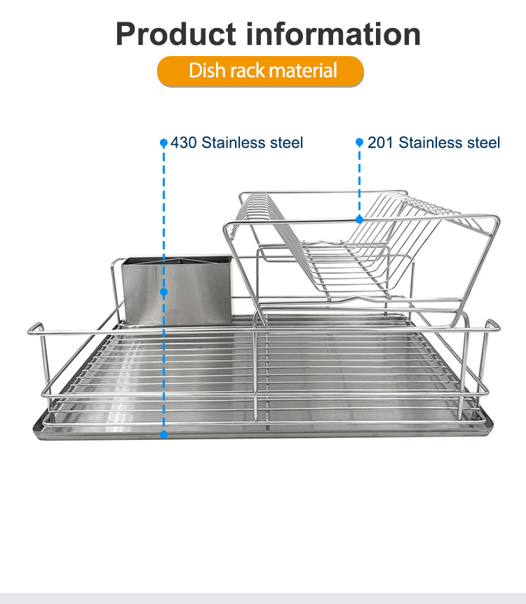 The main body uses 201 stainless steel as the main load-bearing frame, combined with 430 stainless steel key support components. The commonly used wire diameter is approximately 3.5 to 4.5 millimeters, resulting in a more stable structure with improved bending resistance; the entire rack can withstand a static evenly distributed load of approximately 18 to 25 kilograms, preventing sagging even when fully loaded with tableware. The electrolytic surface reduces roughness to a range that is easier to clean, and salt spray resistance can withstand approximately 24 to 48 hours without significant rust spots, better meeting the durability requirements of a damp kitchen for a stainless steel drainer.