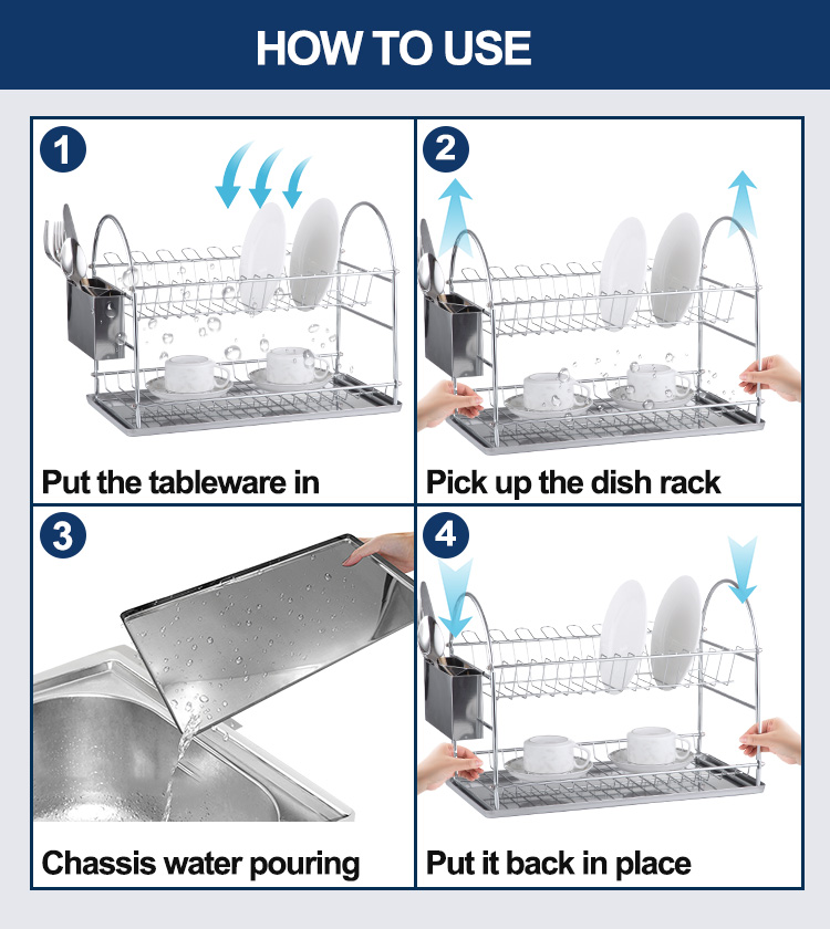 The Stainless Steel Large dish rack is a kitchen draining and storage rack made primarily of stainless steel, offering significant load-bearing and storage capacity. It is mainly used for the centralized placement and natural drying of tableware, cups, and other everyday kitchen utensils. These products typically feature a welded or assembled metal structure, utilizing vertical space efficiently through a well-designed multi-tiered layout. They are suitable for placement on countertops, next to sinks, or near the work area. Compared to ordinary iron or plastic materials, the stainless steel large dish rack boasts superior corrosion resistance, structural stability, and lifespan, better meeting the modern kitchen's demands for long-term use and easy maintenance. Its design prioritizes structural rationality, load-bearing efficiency, and material reliability rather than decorative aesthetics. It is suitable for commercial projects or bulk procurement scenarios requiring stable kitchen configurations. As a fundamental functional unit in kitchen storage systems, this type of product emphasizes consistent specifications, controllable maintenance costs, and long-term supply stability.