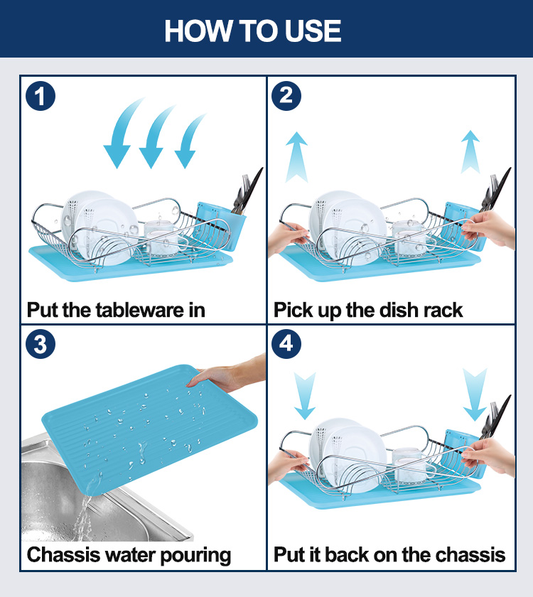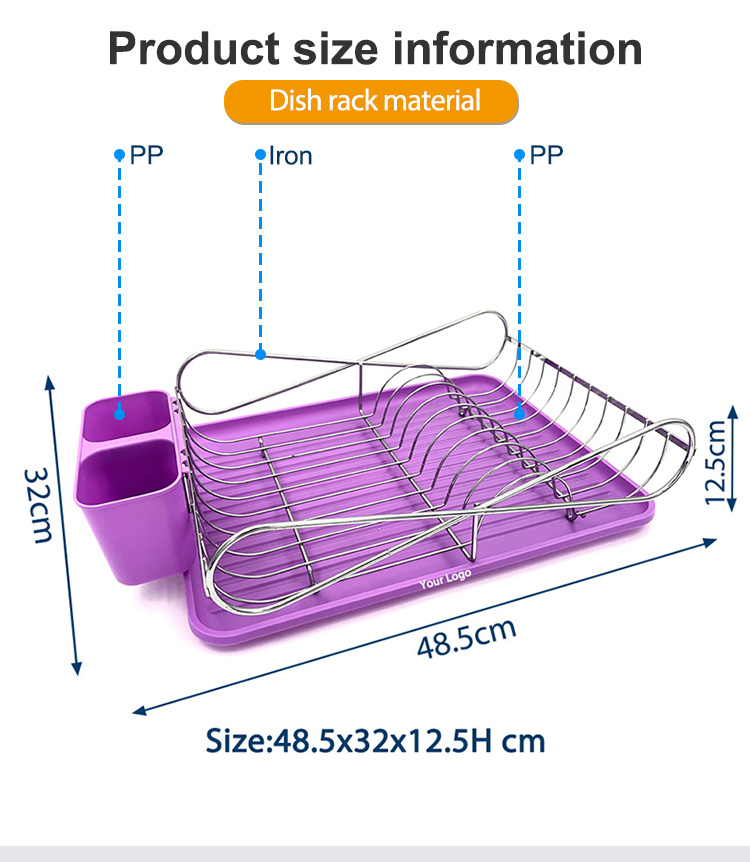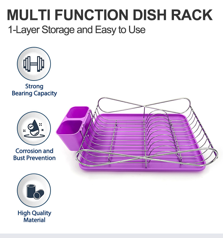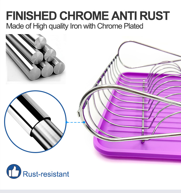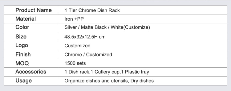 The product surface is available with chrome plating or powder coating. The coating thickness and adhesion meet standard kitchen metal product requirements, maintaining a stable appearance in humid environments and reducing the probability of surface corrosion. This ensures the Cast Iron Dish Drainer has excellent durability in both silver and black finishes.