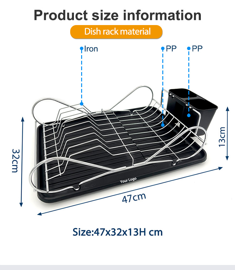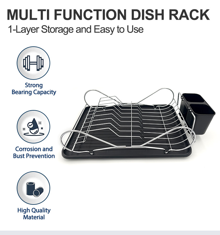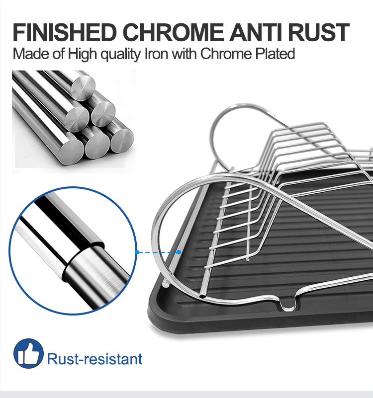 This Single-Layer Cast Iron Dish Rack features a sturdy iron main structure, welded together to ensure frame strength and structural stability for long-term use. The surface is available with chrome plating or powder coating, with a coating thickness controlled within the 60–80μm range, meeting standard protection requirements for kitchen metal products. The iron material itself has good resistance to deformation, preventing structural shifts when holding everyday tableware. The single-layer structure reduces the center of gravity, improving overall stability. The Cast Iron Dish Rack design balances strength and proportion, avoiding material redundancy. This structure is suitable for long-term fixed use on standard kitchen countertops.