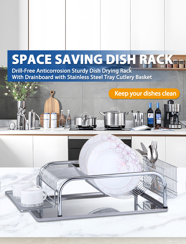 Small kitchens have limited countertop space, so countertop racks need to balance capacity and space efficiency. This rack improves storage efficiency per unit area through its vertical and partitioned structure, preventing the food preparation area from being cluttered with dishes. The cutlery and cup holders keep small items organized, reducing clutter. The ventilated design allows tableware to dry faster, reducing the risk of dampness and odors, making it suitable for long-term use in compact spaces.