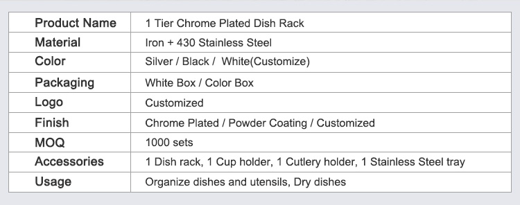 The surface is available with powder coating or chrome plating. The powder coating thickness is typically in the range of approximately 60 to 90 microns, which isolates moisture and improves scratch resistance; the chrome plating layer has a common thickness of approximately 8 to 12 microns, resulting in a denser surface and easier daily cleaning. Combined with the 430 stainless steel tray components, it reduces the probability of rust and discoloration in humid environments, making it suitable for long-term countertop use and frequent cleaning.