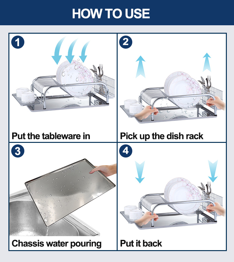 In office pantries, multiple people share cups and tableware, so centralized draining reduces countertop dampness and clutter. The cup and cutlery holders provide clearer item classification, reducing hygiene and management problems caused by mixed storage. The tray collects dripping water, reducing cleaning frequency and the area that needs wiping. For high-frequency use scenarios, this structure is more conducive to maintaining the cleanliness and usability of public areas.